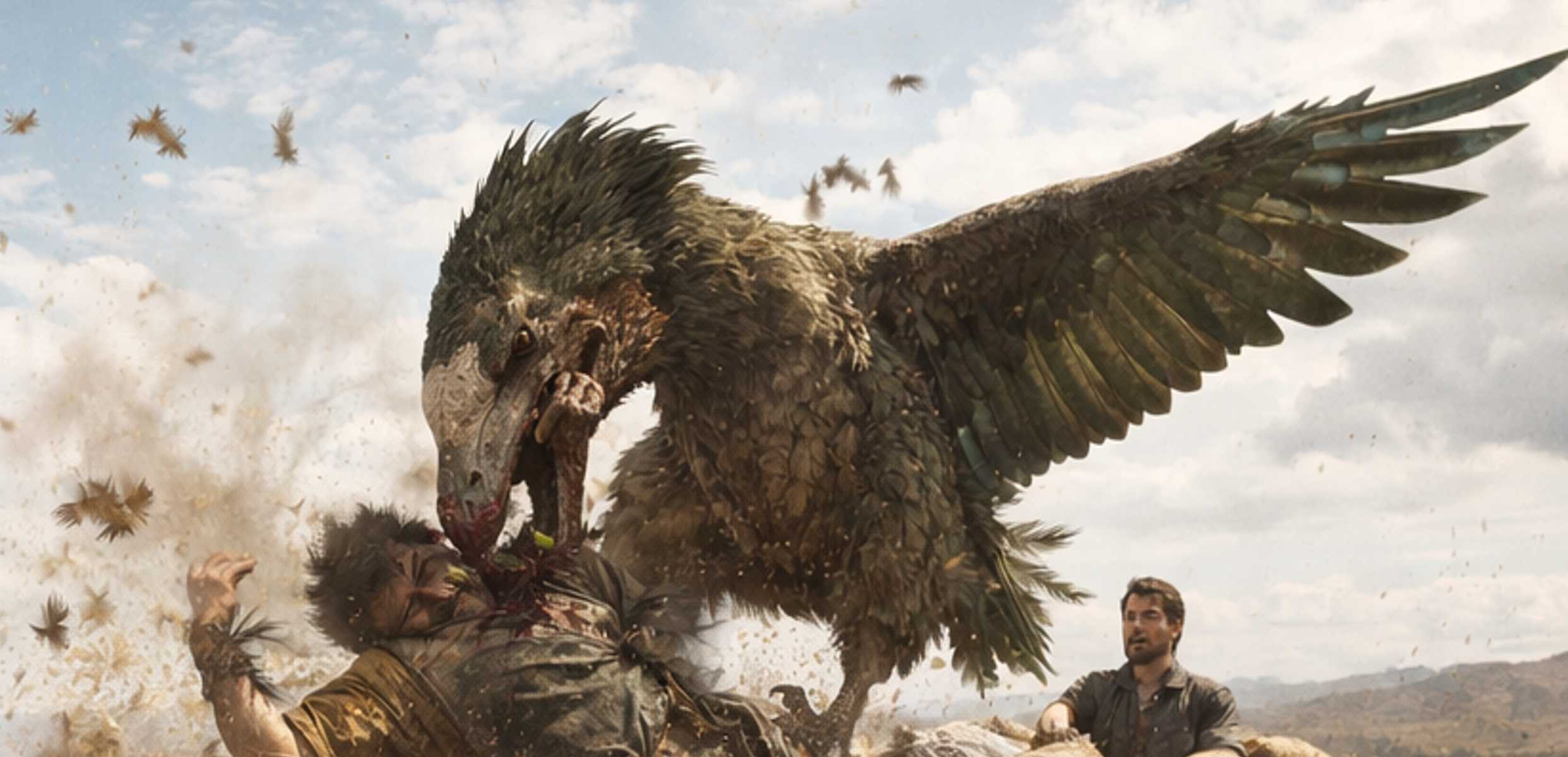 El ataque no llegó del frente, como hubieran esperado, fue la lógica de una emboscada, aprovechando el pastizal: una explosión de violencia tan repentina que cortó el aliento de todos. El Serratus —el Terror de las Llanuras— se lanzó con la precisión de un cazador consumado. Su plumaje críptico, de tonos terrosos y verdes, lo había mantenido invisible hasta que su carga fue ineludible. El conductor nómada Bran apenas tuvo tiempo de girar la cabeza antes de que el pico huesudo y aserrado se cerrara sobre su hombro y lo lanzara fuera del asiento. Fargal, atónito, tan solo pudo contemplar la escena con la boca abierta. La bestia, más de dos metros de músculo y plumaje, se encaramó en la carreta, obsesionada con el grano.