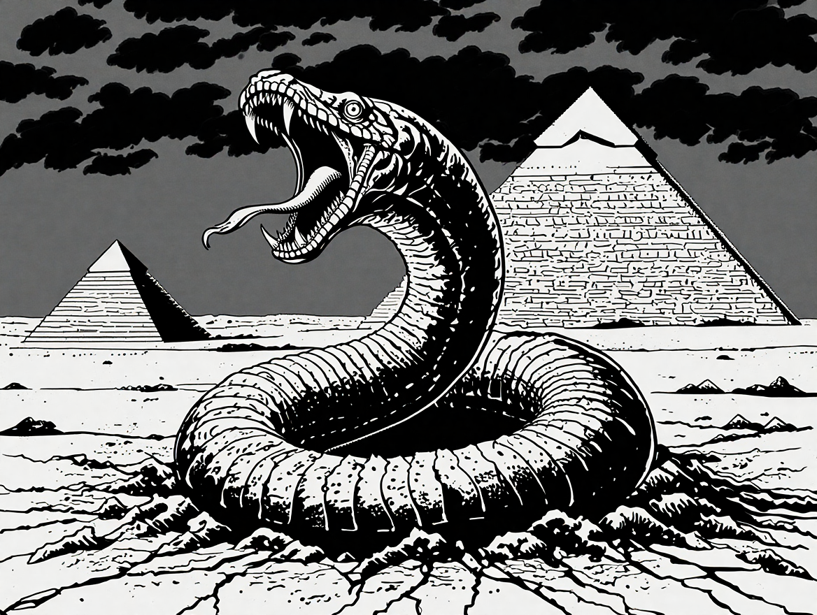 Los thyrianos la conocen por muchos nombres susurrados con temor: Shirama, la Gran Serpiente; Seth, el devorador; Najásh, la tentación primigenia. Pero su esencia es una: un gusano infinito de apetito cósmico que llegó a un mundo joven y lo subyugó con su sola presencia.
