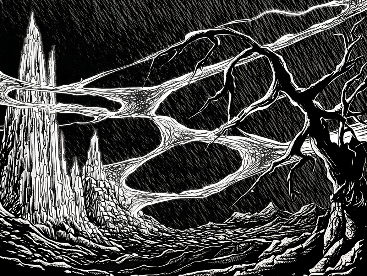 Antes de que el primer thyriano pisara el suelo de Thyrkur, antes siquiera de que los dioses cantaran las estrellas en su sitio, hubo una Era de Oscuridad en Unah. Fue un tiempo medido no en siglos, sino en el lento rechinar de continentes, una edad geológica sumida en la desesperación. Fue entonces cuando llegó el mal, no como un ladrón en la noche, sino como una plaga reptante venida del vacío insondable.
