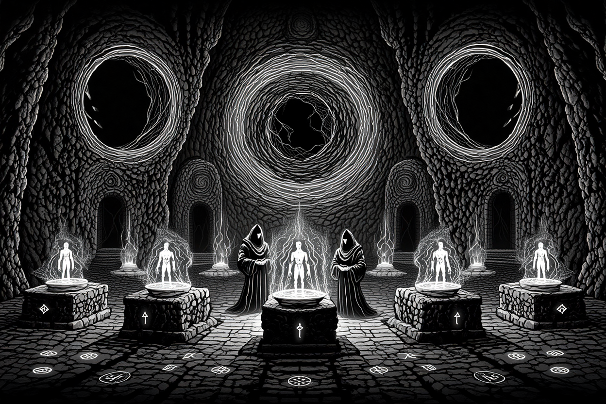 Los nobles Sherets se dedicaron con fervor a la experimentación. Tomaron la misma esencia de la vida, a los Ilum, y los retorcieron, estudiaron y desmembraron no por necesidad, sino por el puro afán de dominar los secretos de la creación. De estos horrores aprendieron a dominar los elementos, a invocar criaturas de otros planos y a atar las fuerzas de la naturaleza a su voluntad.