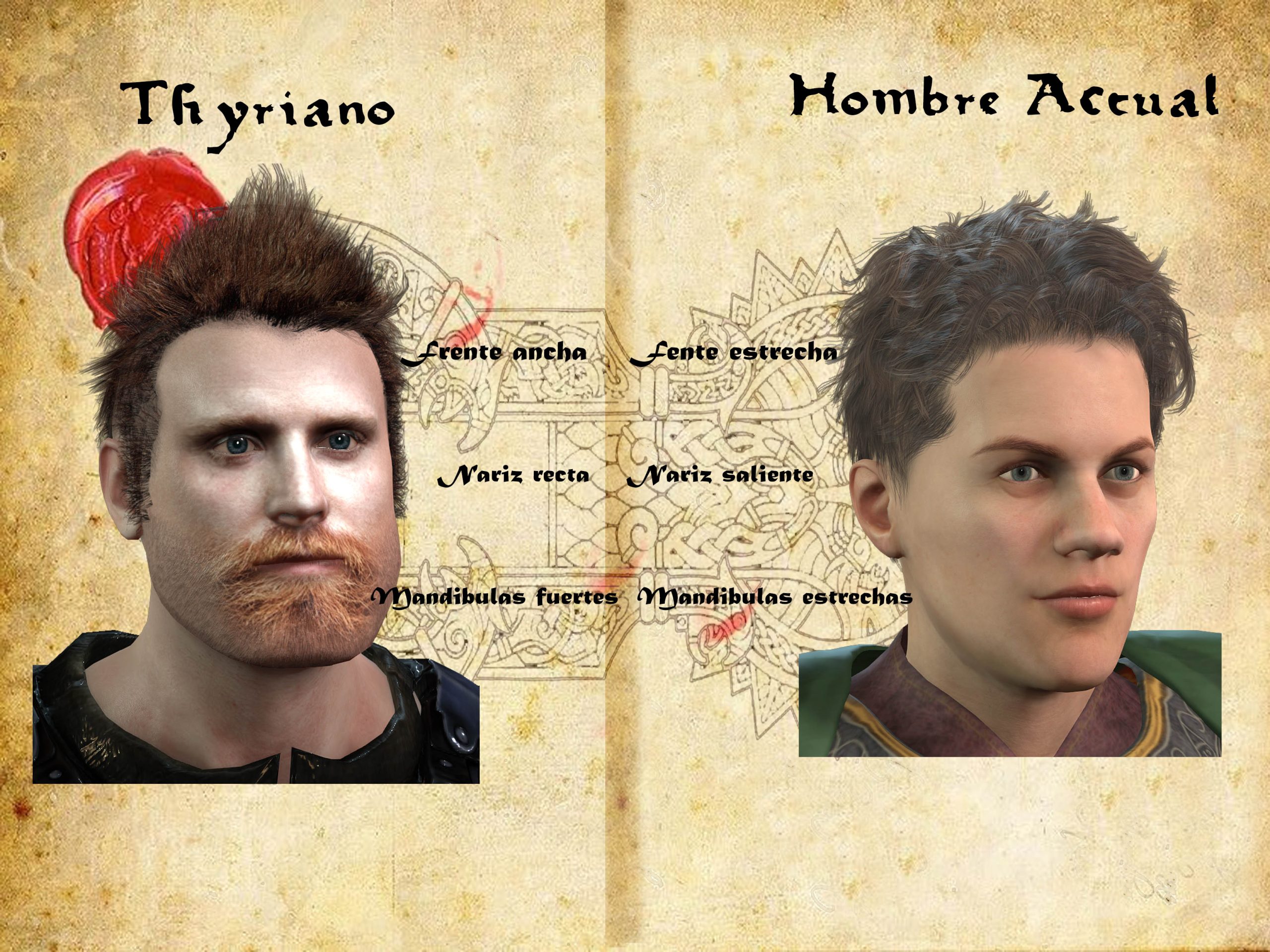 El día después del surgimiento de Eiwa del lodo de Umama, nacieron cinco parejas que fueron los padres de cada familia de thyrianos. Todos compartían una misma forma craneal. Un cráneo con un alto grado de simetría y una frente alta y expandida. Un arco superciliar suave y una mandíbula inferior firme y bien desarrollada alineada con el resto del rostro, de manera que la forma está más cercana a un cuadrado que a una forma angulosa, implicando rostros fuertes pero con mucha armonía.