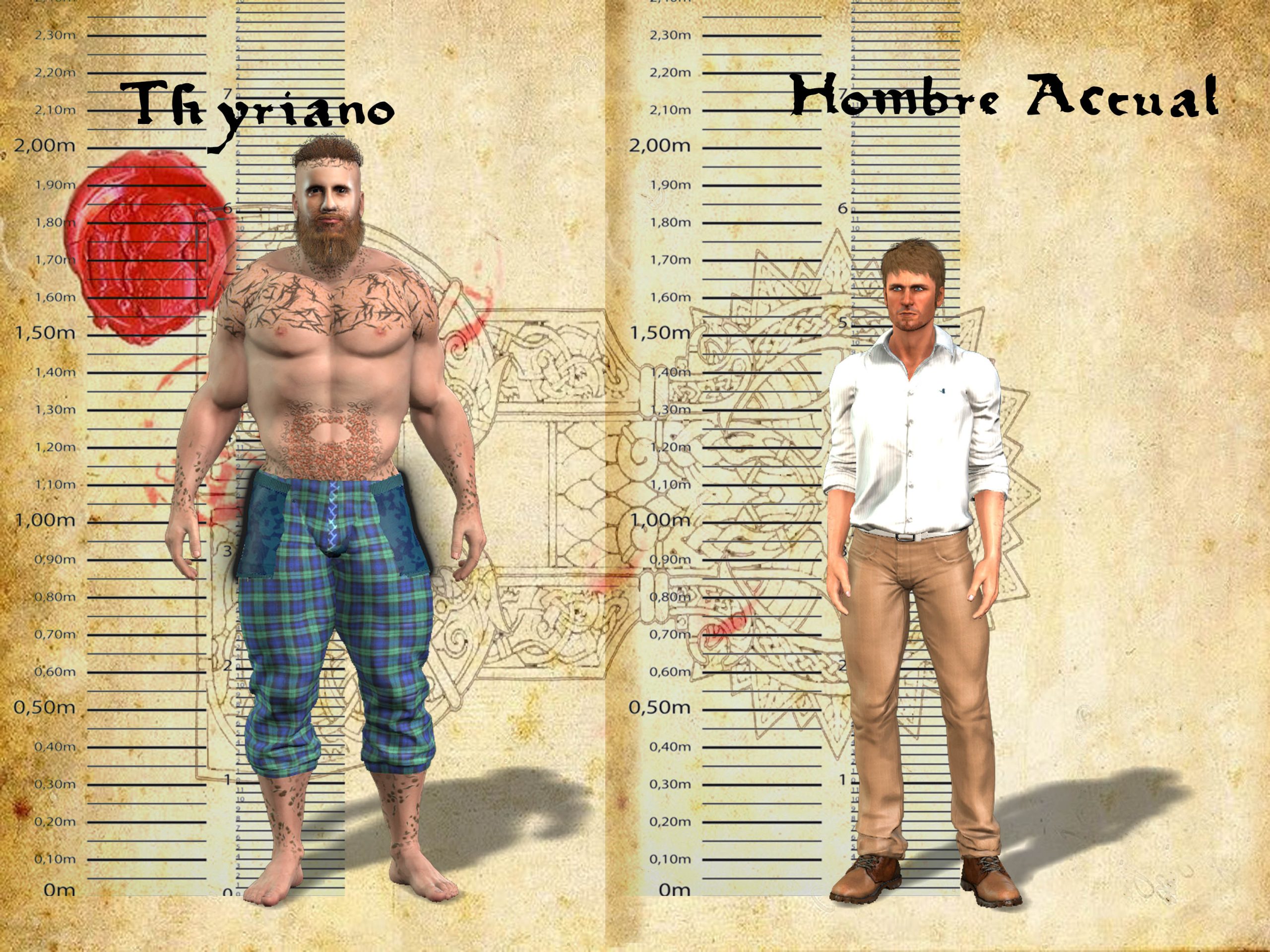 Tabla comparativa de tamaño entre un thyriano y un hombre actual.
